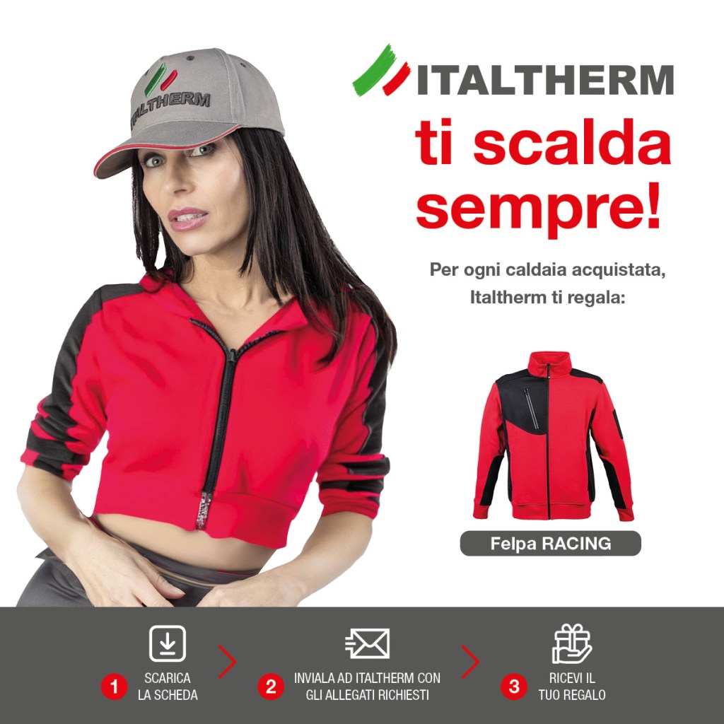 Dal 2 settembre al 31 ottobre per ogni caldaia acquistata, Italtherm ti regala una felpa*