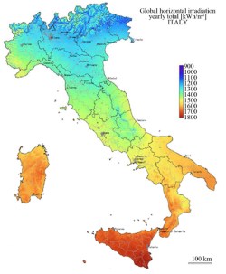 Immagine: Global horizontal irradiation yearly total (Source: European Commission: Joint Research Centre Institute for Environment and Sustainability)