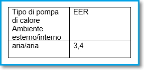 Valori minimi di EER per pompe di calore elettriche (Conto Termico e 65%)