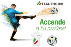 ITALTHERM accende la tua passione è la nuova promozione* Italtherm che permette agli installatori di ricevere in regalo, dal 15 maggio al 30 giugno 2024, per ogni caldaia (o 2 Clima Pure+/2 Clima X TOP) una t-shirt e un pallone originale UEFA EURO 24.